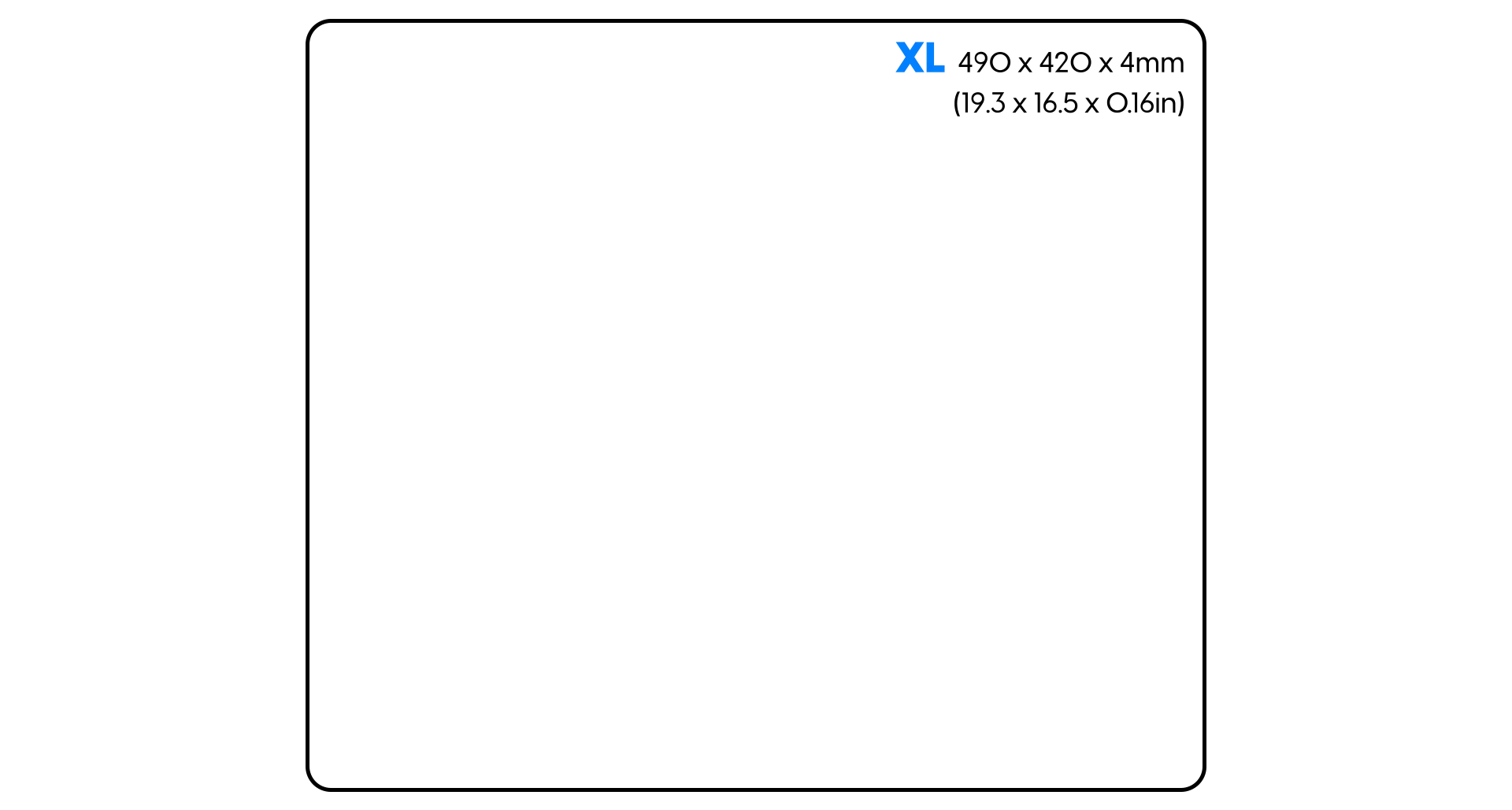 - XL 490mm (19.3in) x 420mm(16.5in) x 4mm (0.16in)