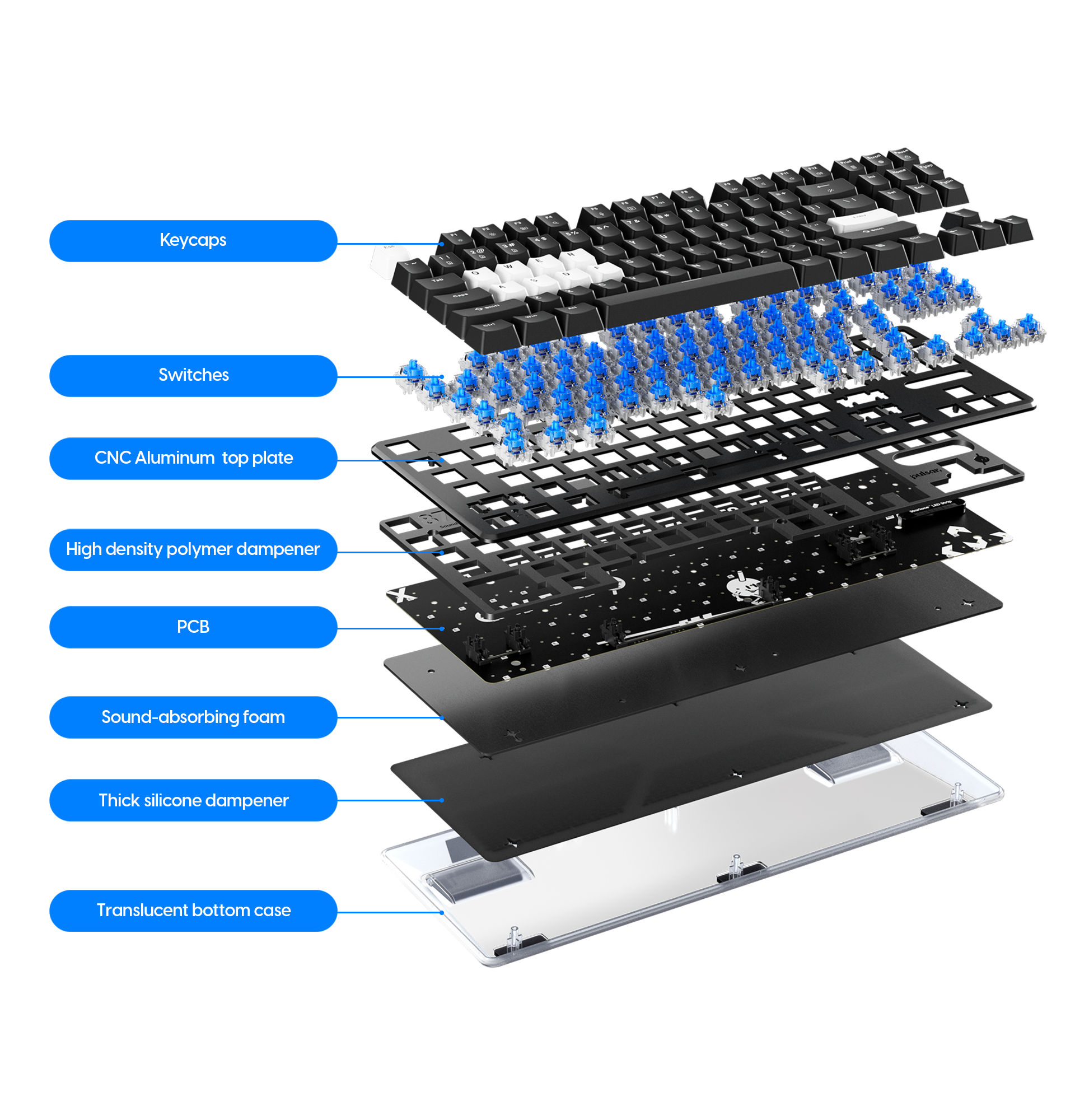 By applying a high-end 6-layer PCB design, noise interference is minimized, enabling fast and reliable key input. The multi-layer structure offers exceptional durability and uniform power distribution, ensuring outstanding accuracy and response speed even during high-speed or multi-key input situations.