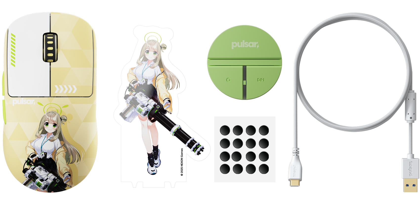 Pulsar proudly presents its official collaboration with Blue Archive, bringing the charm of Abydos to a special-edition gaming mouse. This collection blends Pulsar’s performance-driven design with the unique appeal of Blue Archive to deliver a product that feels both collectible and ready for serious play. The edition also debuts a new accessory: a 2-button dongle featuring an acrylic stand-style character illustration that can be displayed on your desk for an extra touch of Blue Archive flair. A collaboration made for both fans and gamers alike.