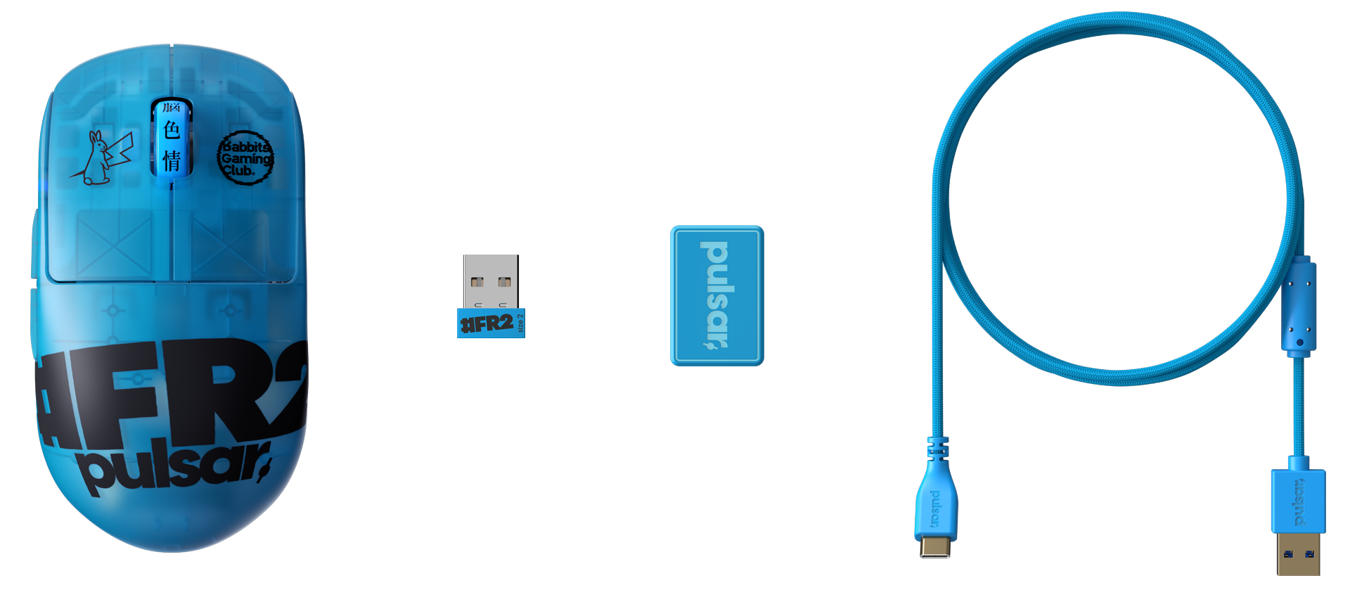 #FR2 (Fxxking Rabbits), an edgy Japanese label, effortlessly combines fashion, design, and photography with striking aesthetics. Teaming up with #FR2, Pulsar presents the X2H gaming mouse, gaming arm sleeve, and Superglide glass mousepad. Boasting #FR2's distinctive bold blue and daring graphics, these items distinguish themselves from typical gaming gear, incorporating street fashion elements that transcend the ordinary and underscore their distinct allure.