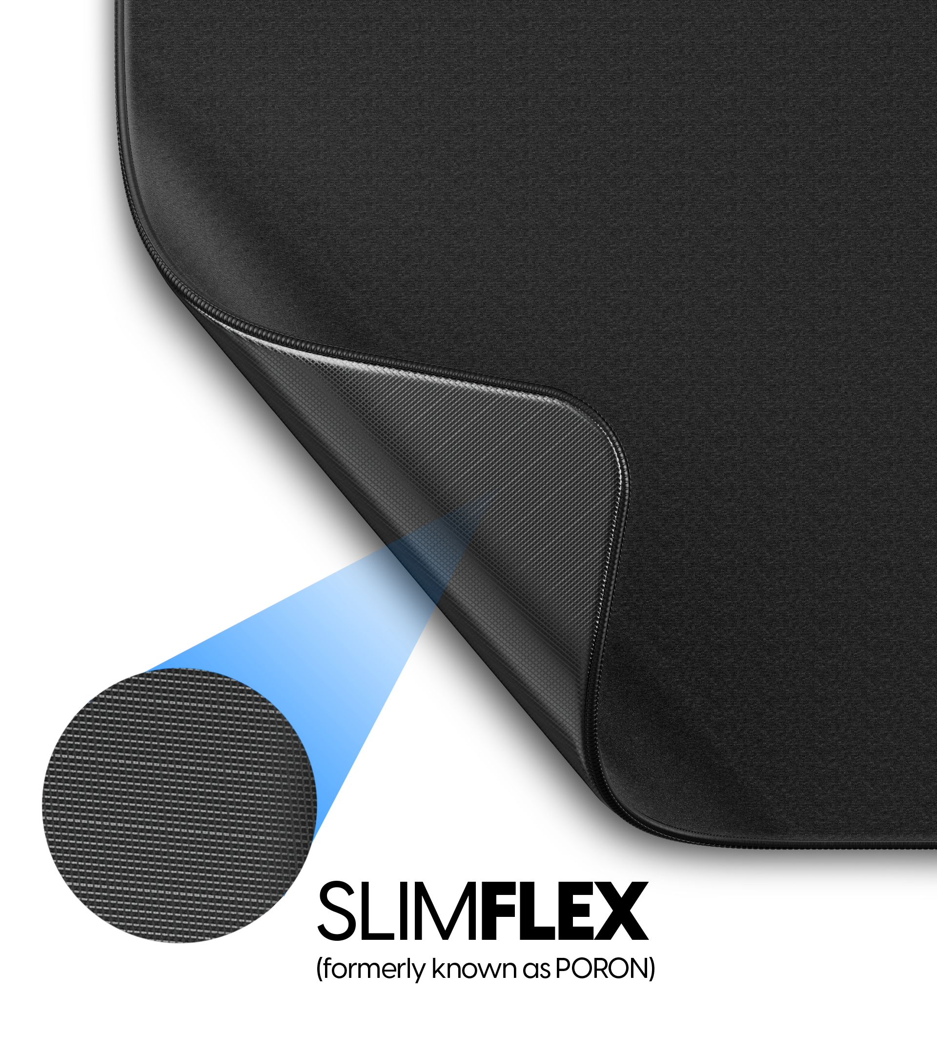 The PORON (now known as SlimFlex) base material is a key upgrade in the Pro Series, offering enhanced customization for users. It allows you to choose between a softer feel, providing a tailored experience based on your preference. This advanced base material improves overall durability and comfort, offering a smoother glide while maintaining control. SlimFlex is a crucial element in optimizing the mousepad's performance, ensuring a high-quality, responsive feel during use.